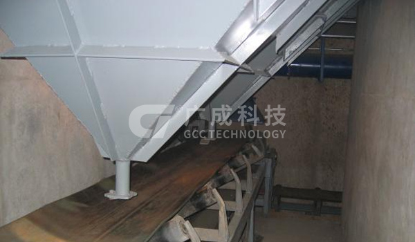 設備由驅動裝置、主動輪裝置、被動輪裝置、張緊裝置、清掃裝置、膠帶、托輥等組成
