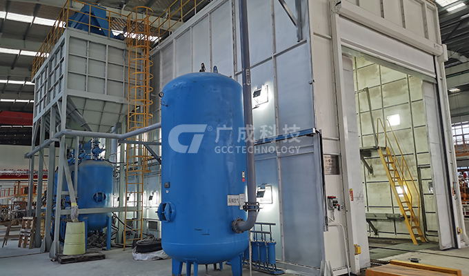 The project is equipped with manual sandblasting room, automatic sandblasting room, sandblasting stay room, rolling brush blowing ash room and OK station
