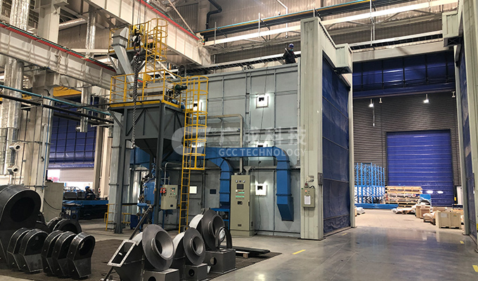配套雙缸四槍噴砂系統(tǒng)、分段回收系統(tǒng)、地坑回收系統(tǒng)、二級(jí)除塵系統(tǒng)、除濕系統(tǒng)、新風(fēng)過(guò)濾系統(tǒng)、廢氣處理系統(tǒng)和中央集控系統(tǒng)